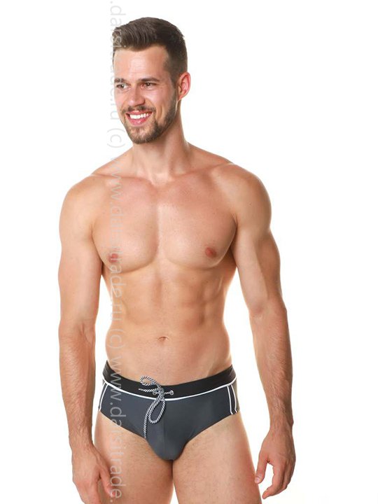 Мужские пляжные плавки. Пояс регулируется плетеным шнурком. 80%PA 20%EA