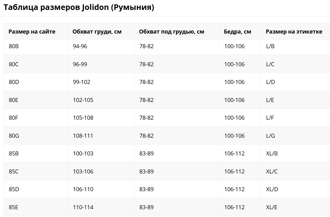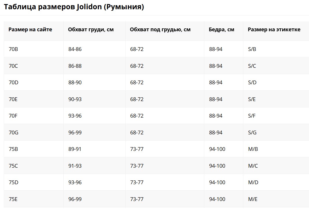 1. Размерная сетка пляжное Jolidon.