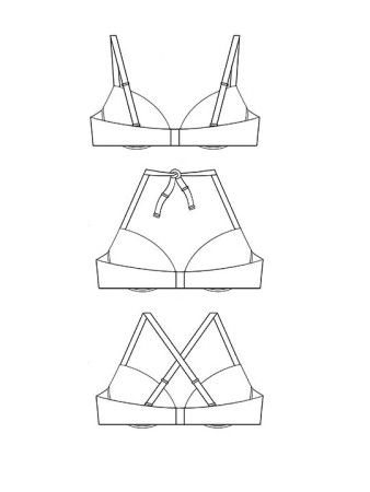 Раздельный купальник: бюстгальтер-балконет с формованной чашкой (без пуш-ап) на косточках. Боковые детали усилены косточками. Регулируемые бретели с двойным вариантом завязывания. Застежка - поворотный замок. Трусики-слип со средней линией талии, высота б