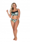 Раздельный купальник: бюстгальтер-балконет с чашками из тонкого поролона и трусики-слип с высокой линией талии. Застежка - поворотный замок.