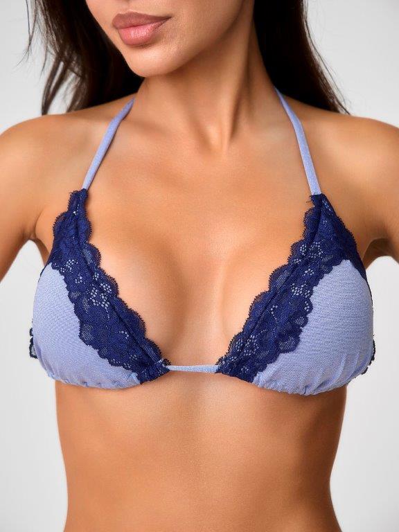 Раздельный купальник из эластичного полотна с блеском и кружевом на подкладе с мягкой чашкой soft bra. Бюстгальтер с мягкой чашкой, со съемными формованными вкладышами. Без каркасов и без боковых корсетных вставок. Верхняя линия чашек декорирована мягким кружевом. Бретели и застежка на завязках. Плавки на подкладе,с завышенной талией. По бокам декоративные завязки. По линии талии декоративное мягкое кружево. Тонкая резинка, подгиб и плоский шов по талии и срезу ножек.