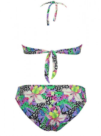 Раздельный купальник: бюстгальтер пуш-ап с градуированной чашкой на косточках и трусики-слип. Застежка - завязка на спинке. Бретели с двойным вариантом завязывания. Высота бочка трусов 5 см.