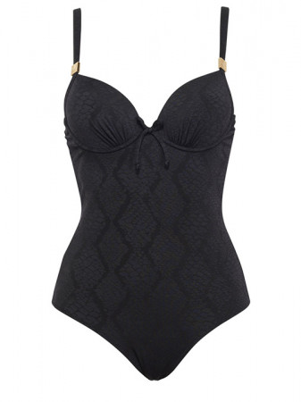 Совместный купальник с формованными чашками (без пуш-ап) на косточках. Передняя часть купальника дублирована укрепленной сеткой обеспечивающей легкий утягивающий эффект и поддержку. Отстегивающаяся бретель, 2 варианта завязывания.