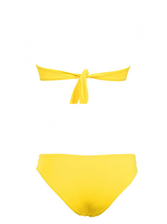 Раздельный купальник: бюстгальтер-бандо с мягкой чашкой без косточек со съемными формованными вкладышами (без пуш-ап), бочок усилен костью. Трусики-слип с декоративным поясом, высота бочка 6 см. Отстегивающаяся бретель через шею. Застежка- завязка на спин