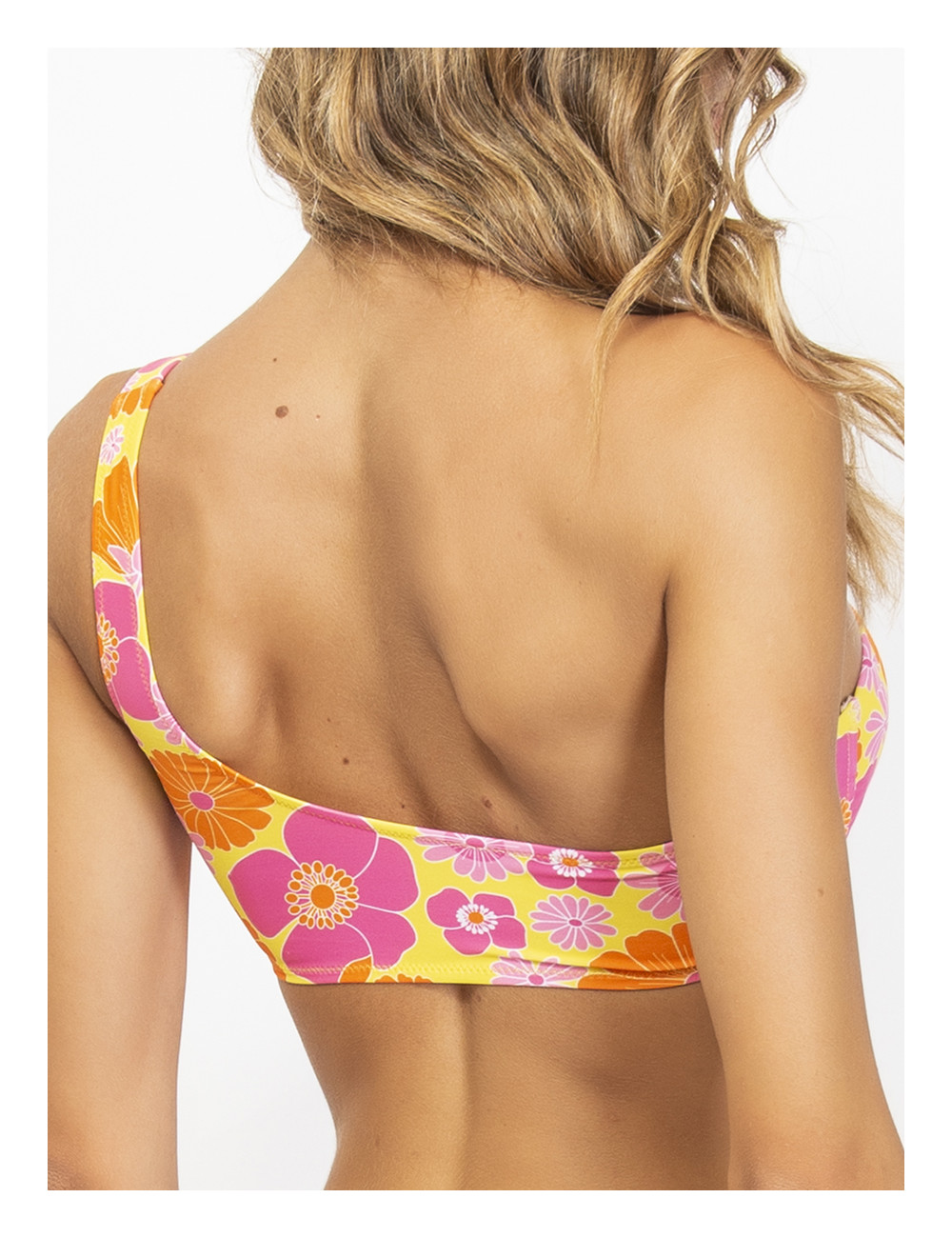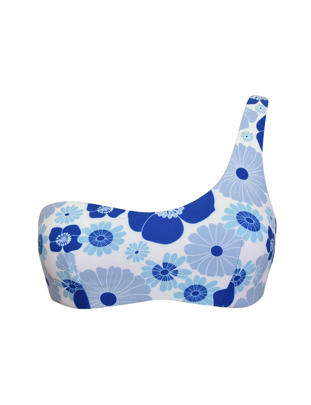 Раздельный купальник: топ с мягкой чашкой на скрытых косточках со съемными формованными вкладышами без пуш-ап, бочок усилен костью. Трусики-танга на завязках.