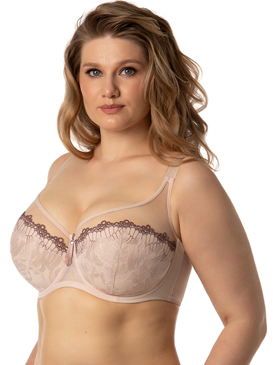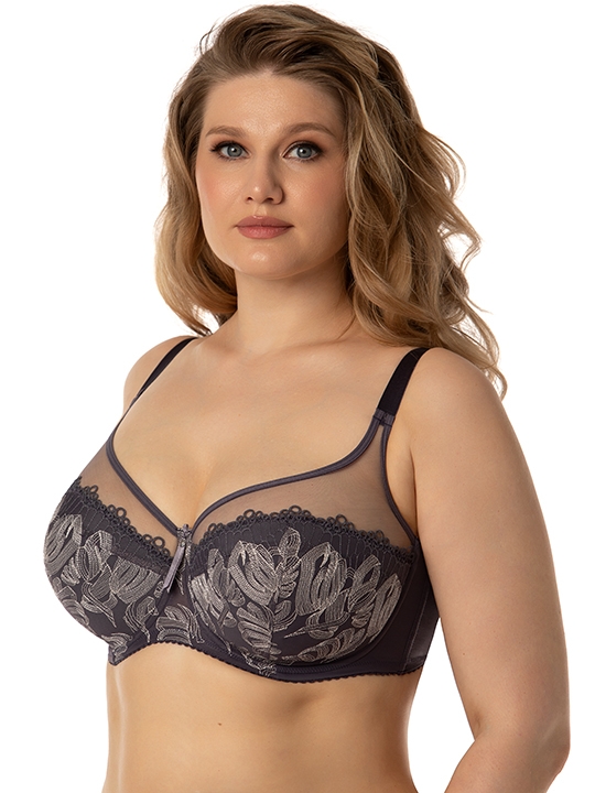 Темная_чайка 075C, 075D, 075E, 075F, 075G, 080B, 080C, 080D, 080E, 080G, 085B, 085C, 085D, 085E, 085F, 090B, 090C, 090D, 090E, 095B, 095C, 095D, 095E Бюстгальтер на каркасах с дублированной чашкой. Дублированная основа чашки имеет Т-образное членение. Это позволяет высоко подымать грудь, придавая ей правильную округлую форму. Наружная чашка из ажурного шитья имеет две разнонаправленные вытачки. Вышитая деталь скрывает линии членения дублированной основы, делая чашку гладкой и исключает пролегание швов бюстгальтера под одеждой. Широкий стан плотно облегает тело и обеспечивает стабильную комфортную посадку бюстгальтера на фигуре. Ширины бретелей и застёжки зависят от размера. Полиамид – 72%, хлопок – 18%, эластан – 10%