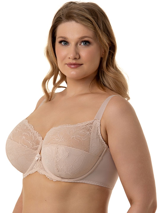 Серебристый_пион 075B, 075C, 075D, 075E, 075F, 080B, 080C, 080D, 080E, 080F, 085B, 085C, 085D, 085E, 090B, 090C, 090D Бюстгальтер на каркасах с мягкой чашкой. Чашки овальной формы с Т-образным членением создают округлую форму, эффектно приподымая грудь. Дополнительная поддержка в боковой части чашки подбирает грудь и собирает её к центру. Подкладка чашки выполнена из натурального хлопка. Обеспечивает максимальное удобство и защиту от раздражений для чувствительной груди. Широкий стан с плотно облегает тело и обеспечивает стабильную комфортную посадку. По центру между чашками стан имеет декоративный вырез, придающий бюстгальтеру лёгкость и воздушность. Ширины бретелей и застежки зависят от размера. полиамид – 88%, эластан – 12%, подкладка хлопок – 100%