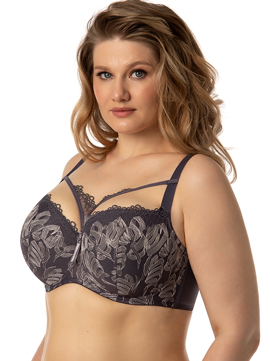 Серебристый_пион 080C, 080D, 080E, 080F, 085B, 085C, 085D, 085E, 085F, 090B, 090C, 090D, 090E, 095B, 095C, 095D Бюстгальтер - балконет на каркасах с дублированной чашкой.Чашки оригинального конструктивного решения. Дублированная основа чашки диагонального членения с вертикальным рельефом нижней части. Кружевная деталь скрывает линии членения дублированной основы, делая чашку гладкой и исключает пролегание швов бюстгальтера под одеждой. Каркасы плотно прилегают к телу без излишнего давления и раздражения. Широкий стан с боковыми упругими пластинами плотно облегает тело и обеспечивает стабильную комфортную посадку бюстгальтера на фигуре. Декоративные стропы съёмные. Полиамид – 70%, хлопок – 18%, эластан – 12%