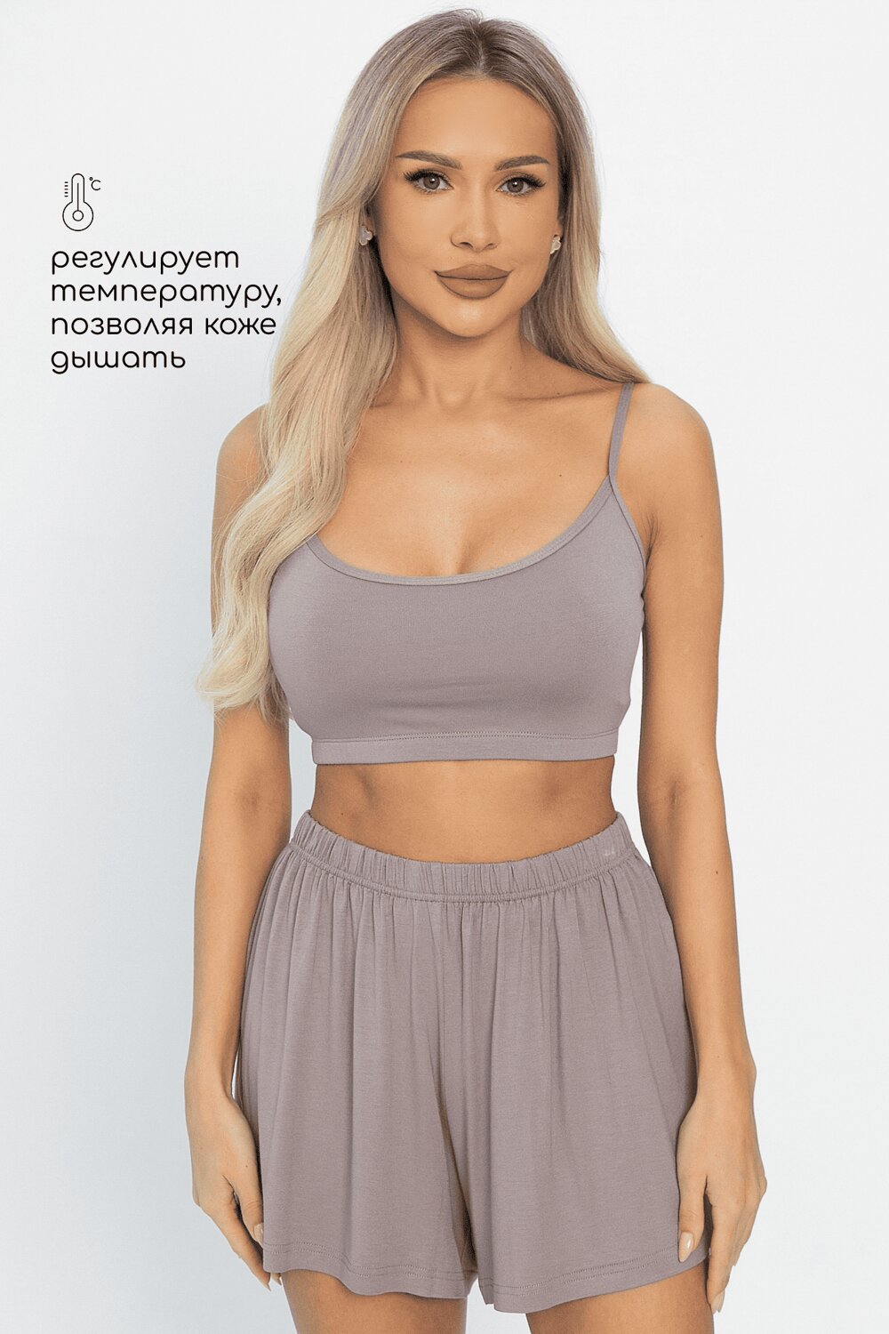 Отснято с пеньюаром П14486-52М, с брюками Б14499-52М, с шортами от костюма К14496-52М