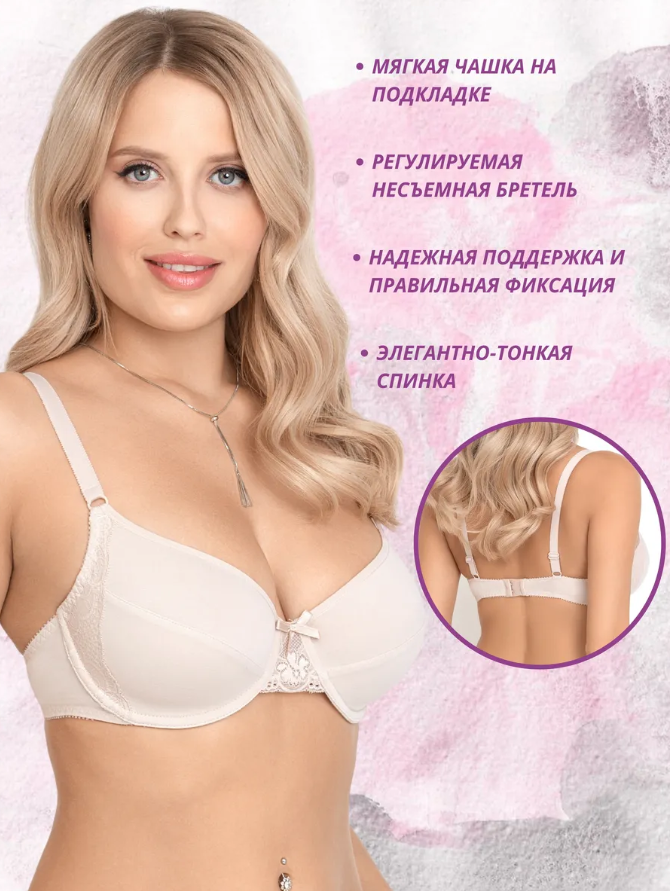 Бюстгальтер Новое Время М041 из эластичного трикотажного хлопкового полотна и эластичного кружева. На каркасах. Нижние детали чашек на подкладке из эластичного трикотажного хлопкового полотна Отделка-атласный бантик.Чашки бюстгальтера М41 изготовлены из эластичного хлопкового полотна и имеют классический горизонтальный плоский шов. Подкладка чашек усиливает нижнюю деталь и обеспечивают оптимальную поддержку и прекрасное облегание. Модель М41 выполнена из высококачественных хлопковых полотен, главными свойствами которых являются гигроскопичность, мягкость и комфорт. Чашка на каркасах.Вид застежки 3 ряда по 1 -2 крючка в зависимости от размера.