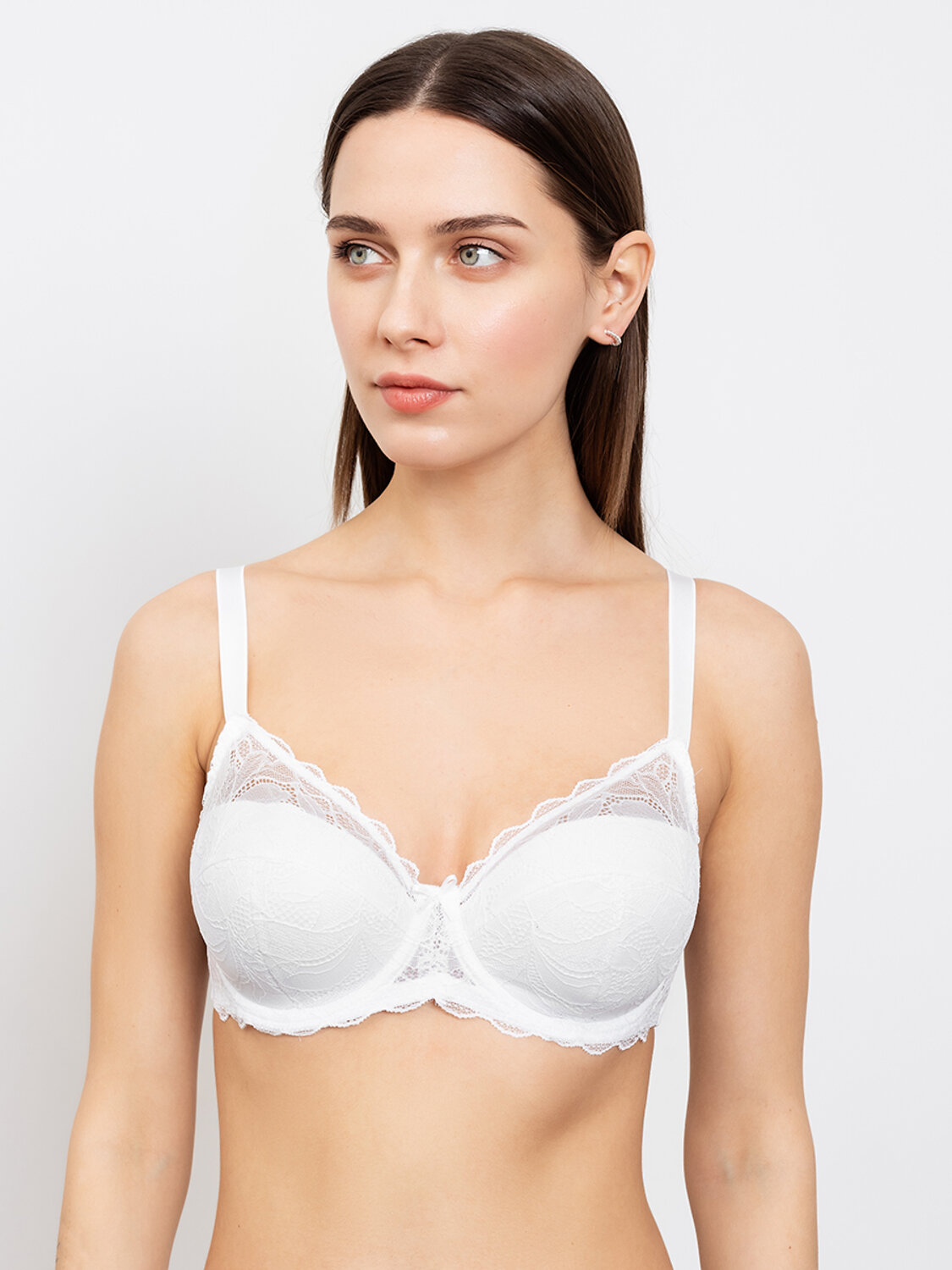 Повседневный бюстгальтер-макси в базовом цвете. Высокие дубляжные чашки на косточках обеспечивает превосходный комфорт и поддержку. Великолепное полупрозрачное кружево делает бюстгальтер еще более женственным. Модель идеально подойдет обладательницам пышного бюста.