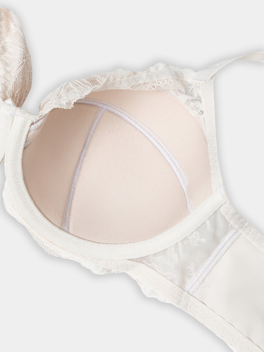 Нежное кружево в верхней части чашек добавляет образу женственности. Состав с преобладанием полиамида и хлопка обеспечивает воздухообмен, а эластан гарантирует идеальное облегание. Бюстгальтер подойдет для обладательниц пышного бюста — в нем удобно двигаться, заниматься спортом или носить его в течение всего дня. Универсальный белый цвет позволяет сочетать его с любым низом из коллекции.