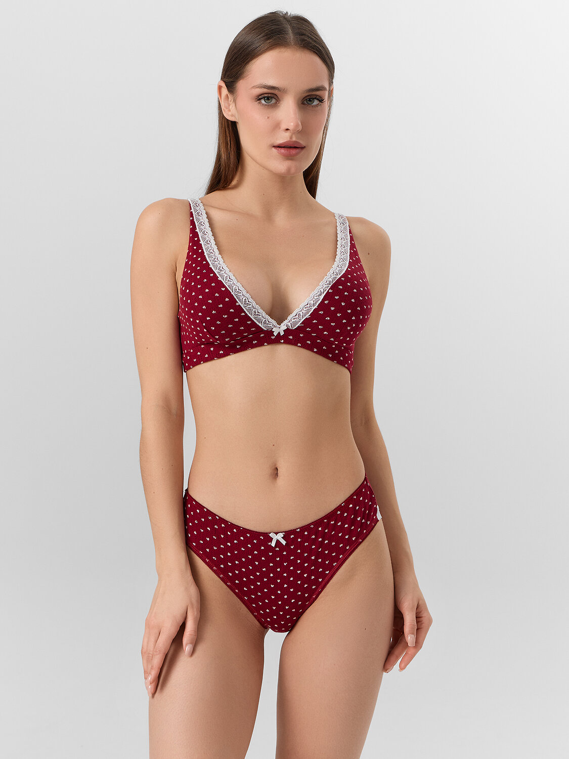 Мягкие чашки, не имеющие жёстких каркасов, создают естественную поддержку, повторяют форму груди и исключают давление, даря ощущение почти невесомости. Чашки украшены изящным кружевом по верхнему краю, добавляющим образу утончённости. Регулируемые бретели и двойная застежка на спинке позволяют точно настроить посадку под вашу фигуру, обеспечивая надёжную поддержку без дискомфорта.