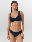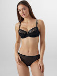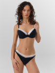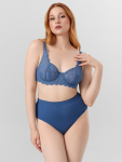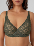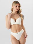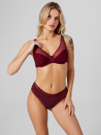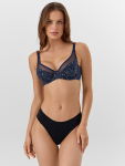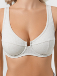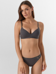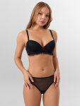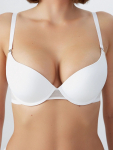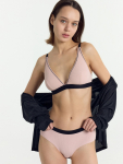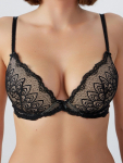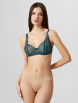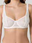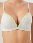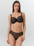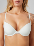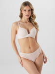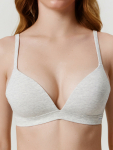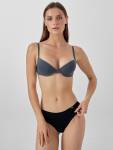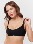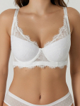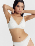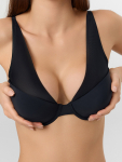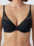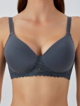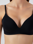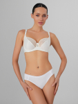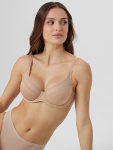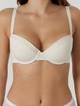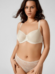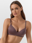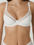 Бюстгальтер имеет формованные чашки, которые обеспечивают естественную поддержку и мягко повторяют форму груди без использования косточек или вставок push-up. Это делает модель особенно удобной, так как она практически не ощущается на теле. Дизайн бюстгальтера выполнен в классическом стиле, без лишних деталей, что делает его незаметным под облегающей и тонкой одеждой.