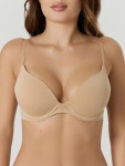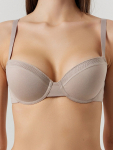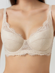 Модель изготовлена из полиамида с добавлением эластана. Такой состав обеспечивает материалу прочность, хорошую растяжимость и способность сохранять форму даже после многочисленных стирок. Бежевый оттенок делает бюстгальтер универсальным и практичным, так как он легко сочетается с любым цветом нижнего белья или одежды.