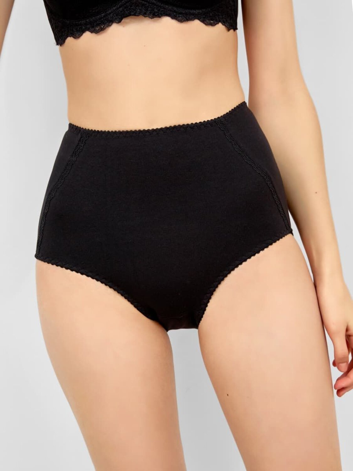 Корректирующие трусики с высокой посадкой, выполненные из великолепного хлопкового полотна с добавлением эластана. Деликатно утягивают проблемные зоны, формируя элегантный женственный силуэт. На поясе и по ножкам – эластичная тесьма. Шарма добавляют кружевные детали, а универсальности – базовая расцветка.