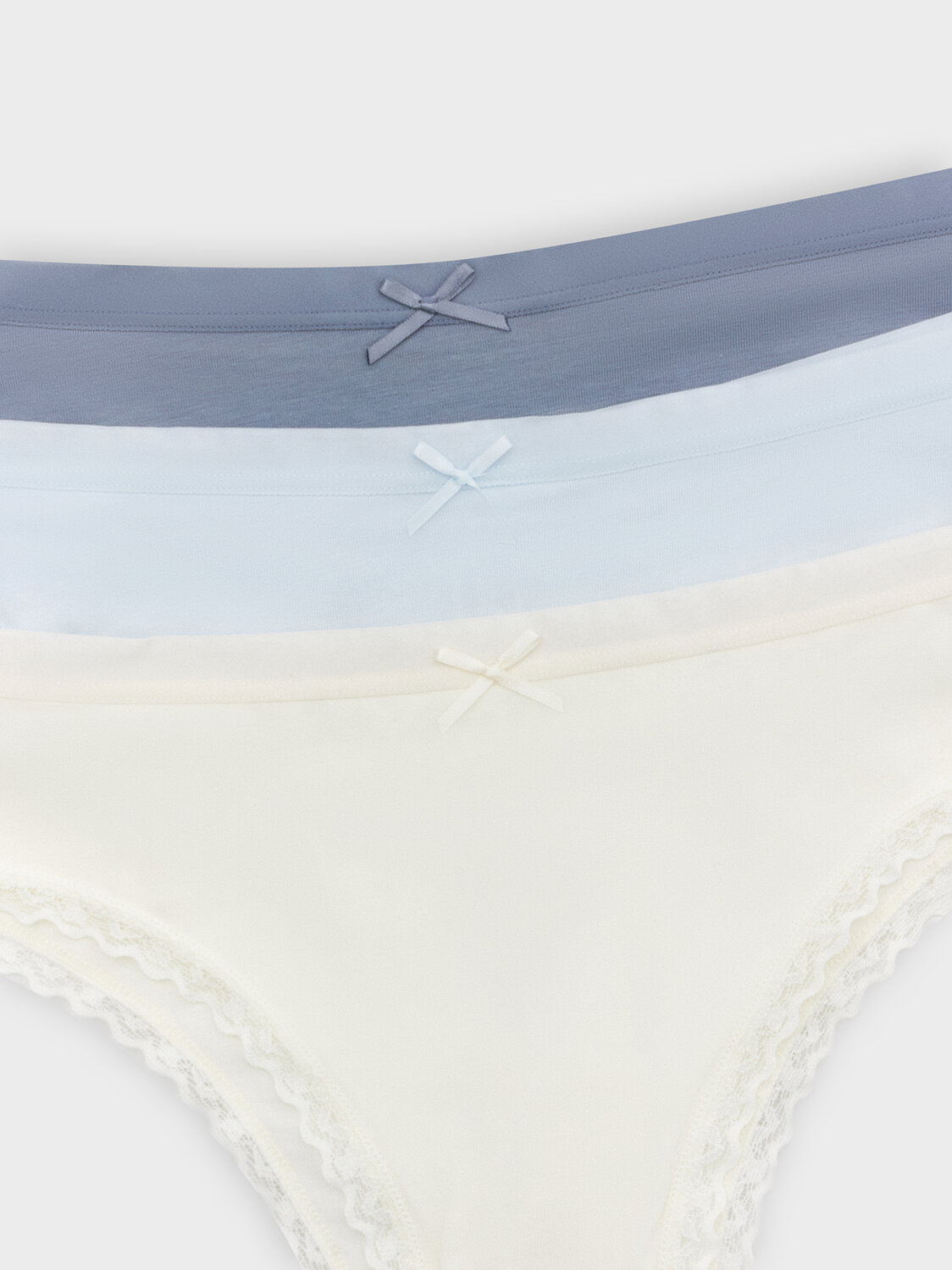 Набор женских трусиков слипов (3 шт.) разных цветов из высококачественного хлопка. Трусы женские слипы хлопок или, как их еще называют, трусы слип-бикини - популярная модель женского белья. Невероятно удобные, благодаря своей невысокой посадке, они пользуются заслуженной любовью покупательниц. Изготовлены из натурального материала, дышащего, мягкого, гипоаллергенного - идеального для повседневной носки. По поясу и ножкам – нежная кружевная лента. Помимо длительного и полного ощущения комфорта, материал отличается долговечностью и сохраняет вид даже после многочисленных стирок. Цвет трусиков останется ярким, рисунок не поблекнет и долго будет радовать вас. Продуманная анатомичная конструкция, плоские швы и деликатные резиночки делают эту модель подходящей для занятий спортом, можно использовать её как спортивное бельё, а также, оно идеально для ежедневной носки. Пригодятся трусы-бикини и будущим мамам: низкая талия трусиков удобно помещается под растущим животиком и абсолютно не давит. Благодаря широкому размерному и цветовому ряду, в линейке Mark Formelle вы обязательно найдете модель женского белья с посадкой по своему вкусу!