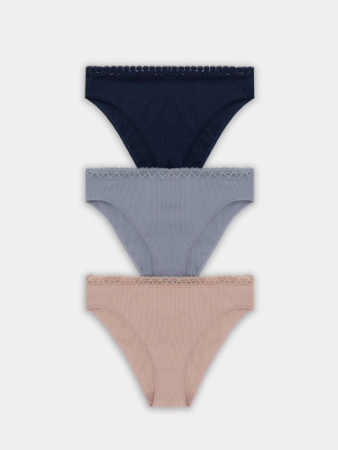 Стильный набор женских трусиков слипов разных цветов из высококачественного хлопка - популярная модель женского белья. Невероятно удобные, благодаря своей невысокой посадке, они пользуются заслуженной любовью покупательниц. Изготовлены из натурального материала, дышащего, мягкого, гипоаллергенного - идеального для повседневной носки. По поясу и ножкам - нежная кружевная лента. Помимо длительного и полного ощущения комфорта, материал отличается долговечностью и сохраняет вид даже после многочисленных стирок. Цвет трусиков останется ярким, рисунок не поблекнет и долго будет радовать вас. Продуманная анатомическая конструкция, плоские швы и деликатные резиночки делают эту модель подходящей для спорта и на каждый день.