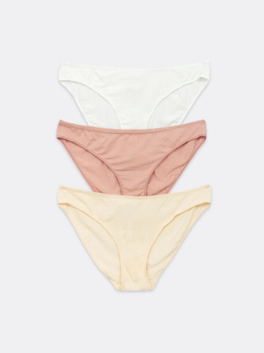 Набор женских трусиков (3 шт.) в различных цветах. Трусы женские слипы хлопок или, как их еще называют, трусы слип-бикини - популярная модель женского белья. Невероятно удобные, благодаря своей заниженной посадке, они пользуются заслуженной любовью покупательниц. Трусы изготовлены из высококачественного натурального хлопка, дышащего, мягкого, гипоаллергенного - идеального для повседневной носки. Помимо длительного и полного ощущения комфорта, материал отличается долговечностью и сохраняет вид даже после многочисленных стирок. Цвет трусиков останется ярким, рисунок не поблекнет и долго будет радовать вас. Продуманная анатомичная конструкция, плоские швы и деликатные резиночки делают эту модель подходящей для занятий спортом, можно использовать её как спортивное бельё, а также как ночные трусики для сна. Пригодятся трусы-бикини и будущим мамам: низкая талия трусиков удобно помещается под растущим животиком и абсолютно не давит. Благодаря широкому размерному и цветовому ряду, в линейке Mark Formelle вы обязательно найдете модель белья с низкой посадкой по своему вкусу.