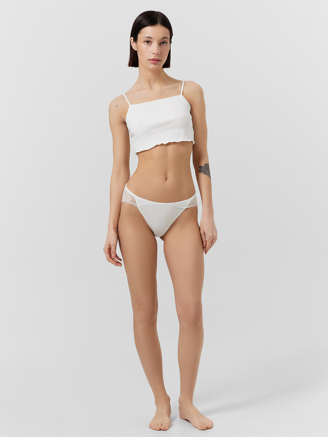 Набор женских трусиков-слипов с кружевом — это утонченное сочетание элегантности и комфорта. Классический силуэт со средней посадкой подчеркнет изящные линии фигуры, создавая аккуратный и женственный образ. Изделия выполнены из мягкой и натуральной хлопковой кулирки, которая дарит коже нежное прикосновение и обеспечивает комфорт на каждый день. Эластичное кружево, использованное для отделки, добавляет модели утонченности и изысканности. Ластовица, выполненная из кулирной глади, создана для максимального удобства. Верхние и нижние срезы, обработанные эластичной тесьмой, обеспечивают долговечность и создают аккуратный и завершенный вид. Этот набор станет прекрасным выбором для тех, кто ценит красоту, качество и комфорт в своём нижнем белье.