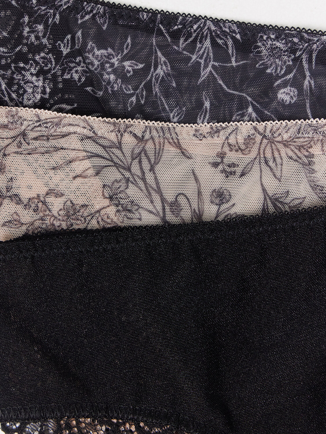 Задняя деталь из сетки, по бокам декорирована деталями из широкого эл кружева. Подкладка ластовицы настрочена накладным швом с верхним застилом.