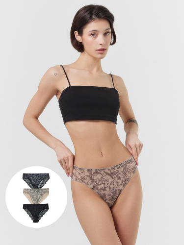 Этот набор женских трусиков-бразилиана сочетает в себе элегантность и комфорт. Модели изготовлены из эластичной сетки, обеспечивающей идеальную посадку и комфорт во время носки. Передняя часть трусиков декорирована широкой эластичной кружевной вставкой, придающей изделию изысканный и привлекательный вид. Подкладка ластовицы выполнена из кулирной глади, что обеспечивает дополнительное удобство и мягкость в носке. Этот набор трусиков станет стильным и функциональным дополнением к вашему гардеробу, подчеркивая вашу женственность и чувственность.