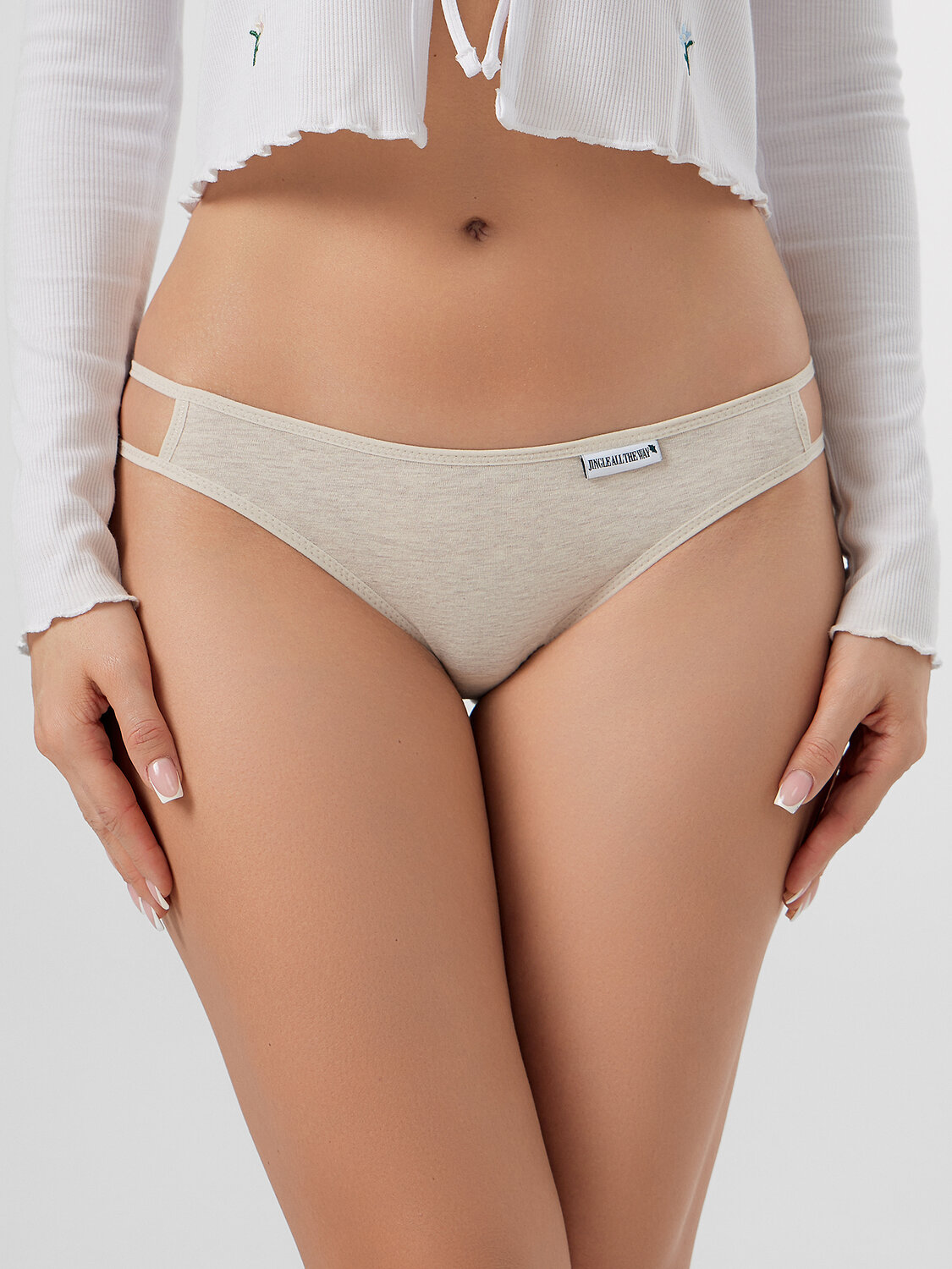Основой для этих трусиков послужил мягкий трикотаж на основе кулирной глади. Его состав с преобладанием натурального хлопка и добавкой эластана дарит коже приятные ощущения. Материал отличается высокой воздухопроницаемостью и гипоаллергенными свойствами, обеспечивая комфорт при длительной носке. Небольшой процент эластичных волокон гарантирует, что слипы сохранят свою первоначальную форму, мягко облегая тело без стеснения движений.