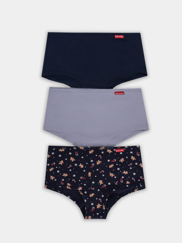 Набор из трех женских слипов с новогодним принтом создан для тех, кто ценит ежедневный комфорт и праздничное настроение. Каждая модель со средней посадкой обеспечивает удобную поддержку и идеальную посадку, которая сохраняется в течение всего дня. Протяжки по боковым швам аккуратно подчеркивают силуэт.