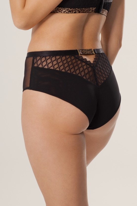 Черный M, L, XL, XXL Трусики лип Tristane с завышенной линией талии выполнены из кружевного полотна с фантазийным рисунком, спереди продублированы черной сеткой, по бокам вставки из черной сетки, на спинке V-образный вырез с резинкой с хищныым принтом, фурнирута металлическая цвета желтого золота, проймы ног из сетки, сложенной вдвое, ластовица из 100% хлопка. Трусики идеально комплектуются с бюстгальтерами Tristane. полиамид 60%, полиэстер 16%, хлопок 10%, эластан 7%, другие 7%