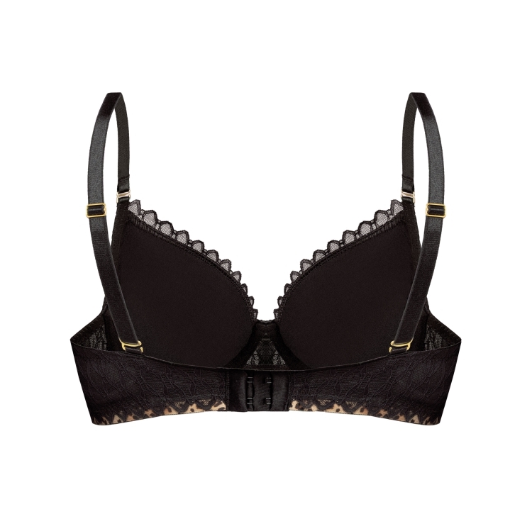 Черный 65E, 65F, 70B, 70C, 70D, 70E, 70F, 75B, 75C, 75D, 75E, 80B, 80C, 80D, 85B, 85C Бюстгальтер Tristane push up чашки формованные с несъёмным силиконовым пуш-апом, на косточках, с дополнительными боковыми поддержками, внешняя сторона чашек и спинка из сетки с фантазийным рисунком, спинка продублирована черной сеткой, под чашками пришита резинка с хищным принтом. Бретельки отстёгиваются, регулируются по длине. На спине застёжка на удлинитель, фурнитура металлическая цвета желтого золота. Бюстгальтер идеально сочетается с трусиками из коллекции Tristane. На модели бюстгальтер размера 70E. полиамид 58%, полиэстер 32%, эластан 10%