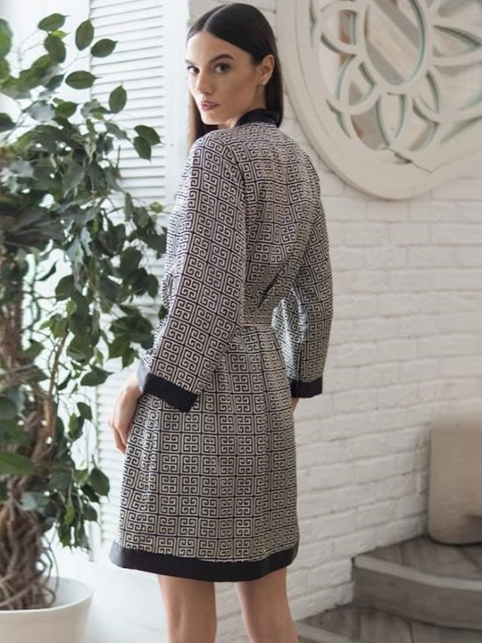 Черно-белый XS, XXL/XXXL, XXXXL/XXXXXL Халат женский 70% натуральный шелк, 25% полиэстер, 5% эластан