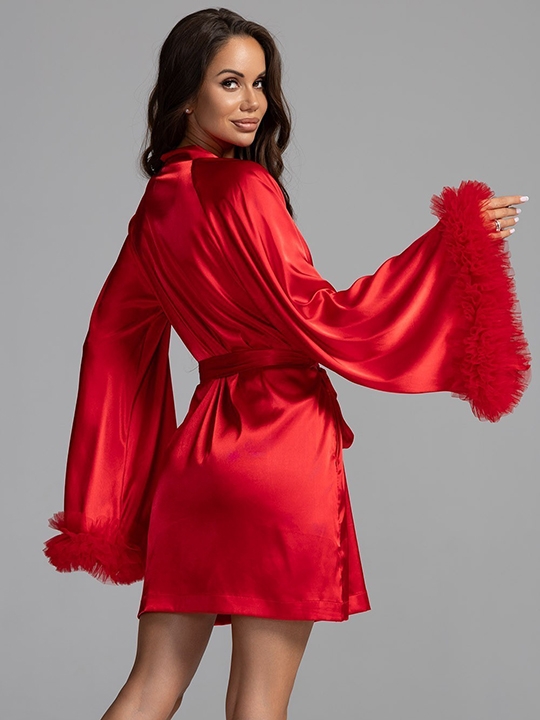 Красный S/M, L/XL, XXL/XXXL, XXXXL/XXXXXL Короткий халат Mia-Amore выполнен из мягкого искусственного шёлка. Рукава запашного халата по низу украшены пышной многослойной сетчатой рюшей. В боковых швах халата карманы. Халат запахивается с помощью широкого пояса 100% полиэстер
