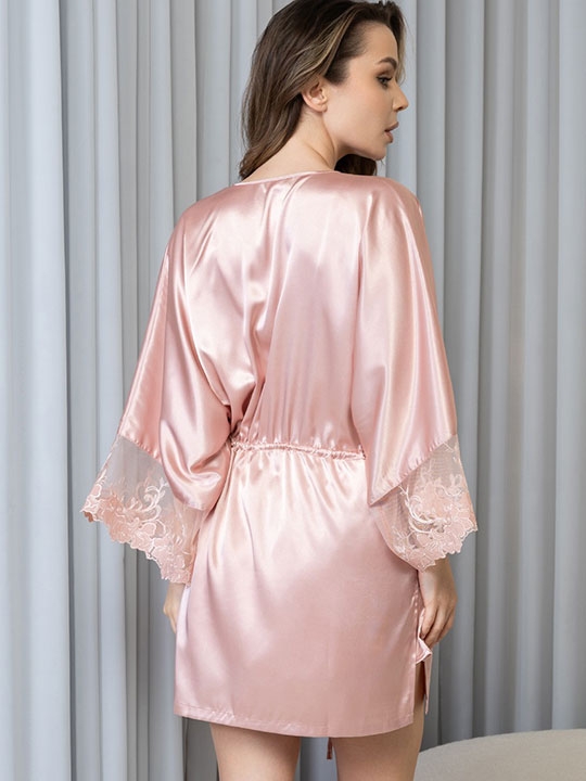 Сливочный S, M, L, XL, XXL Комплект-тройка Mia-Amore состоит из браллета, шорт и запашного удлинённого халата на кулиске, выполнен из однотонного смесового шёлка. Спереди вырез браллета декорирован вышивным кружевом. Широкие рукава халата декорированы кружевными вставками. 70% натуральный шёлк, 25% полиэстер, 5% эластан