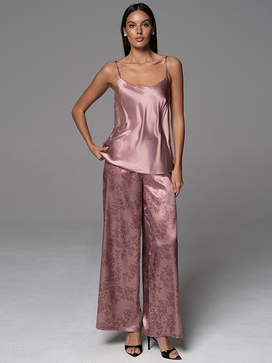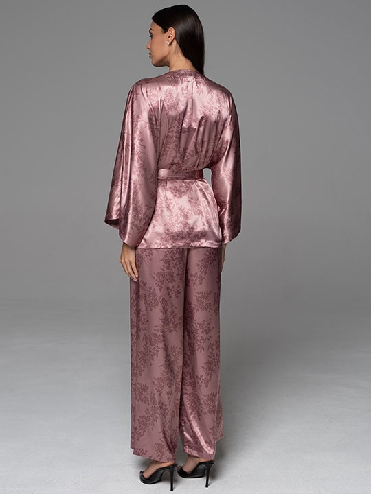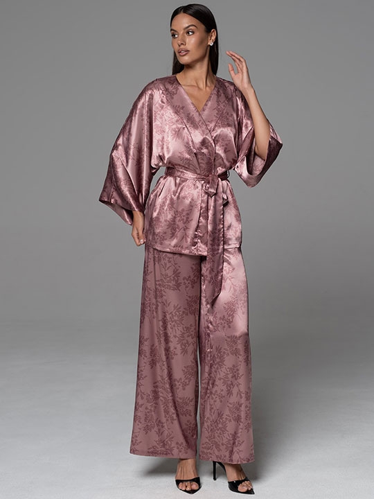 Античная_роза S, M, L, XL, XXL, XXXL, XXXXL, XXXXXL Комплект-тройка Mia-Amore состоит из запашного жакета, широких брюк и топа. Жакет и брюки выполнены из принтованного смесового шелка, а топ из однотонного. Линию талии можно подчеркнуть за счет широкого пояса, который идет в комплекте. 70% натуральный шелк, 25% полиэстер, 5% эластан