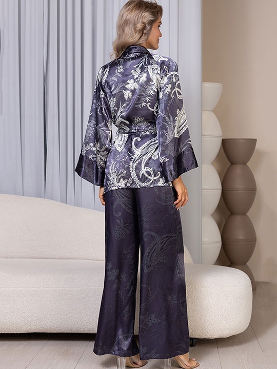 Черника S, M, L, XL, XXL, XXXL, XXXXL, XXXXXL Комплект-тройка Mia-Amore состоит из топа, брюк и жакета. Комплект выполнен из принтованного смесового шёлка с изображением пейсли. Топ с бретелями маечного типа и брюки выполнены из ткани-компаньона с принтом в виде лёгкой монохромной прорисовки пейсли. Жакет комплектуется широким поясом, в боковых швах карманы, манжеты и планка жакета выполнены из компаньона. 70% натуральный шёлк, 25% полиэстер, 5% эластан