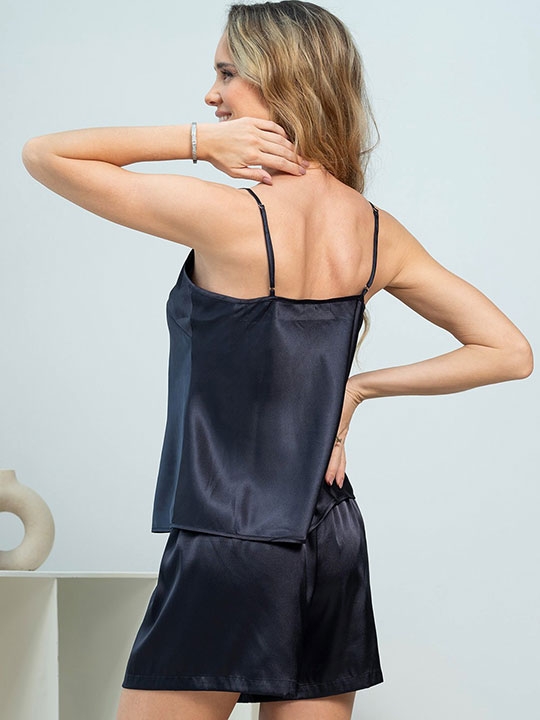 Черника S, M, L, XL, XXL, XXXL Комплект Mia-Amore состоит из топа на тонких бретелях и шорт. Изделия комплекта выполнены из однотонного смесового шелка. Вышивное двухцветное кружево украшает центральную часть топа. Декор - атласный бантик с подвеской, расположенный по вырезу топа. 70% натуральный шёлк, 25% полиэстер, 5% эластан