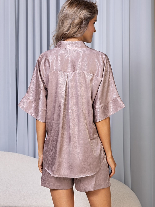 Карамель S, XXL, XXXL Комплект Mia-Amore состоит из рубашки и шорт, выполнен из жаккардового полотна из искусственных волокон. Рубашка свободного силуэта с короткими рукавами и центральной застежкой на пуговицы и английским воротником. Комфортные шорты свободного силуэта с декоративной завязкой на поясе. 100% полиэстер
