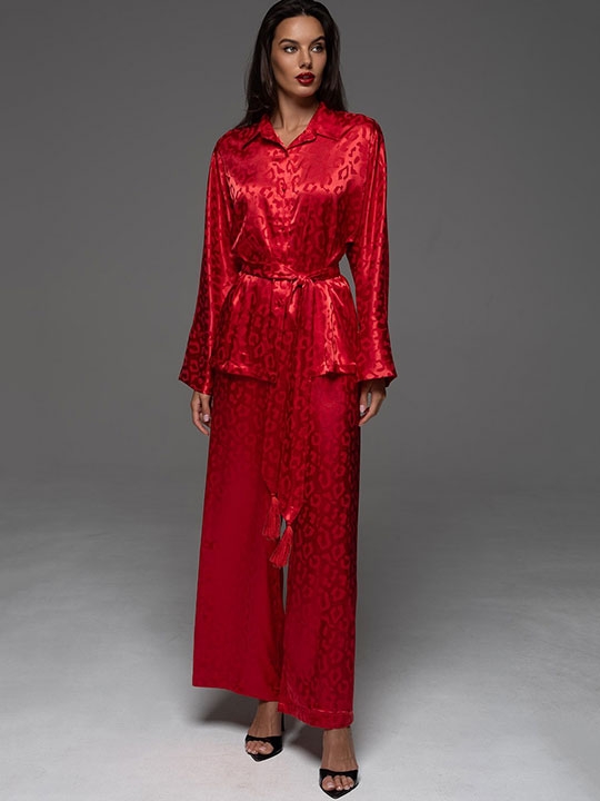 Черный S, M, L, XL, XXL, XXXL, XXXXL, XXXXXL Комплект Mia-Amore состоит из рубашки свободного силуэта с длинным рукавом и широких брюк-палаццо. Изделия комплекта выполнены из искусственного шелка на жаккардовой основе. В комплекте широкий пояс с кисточками. 100% полиэстер