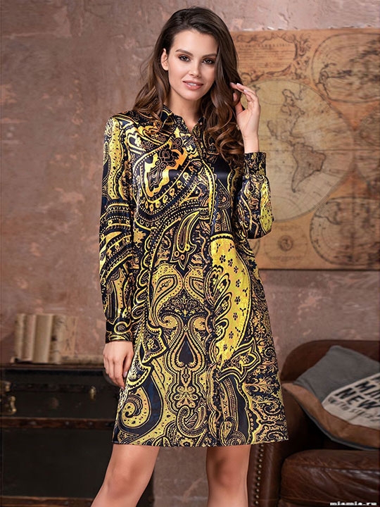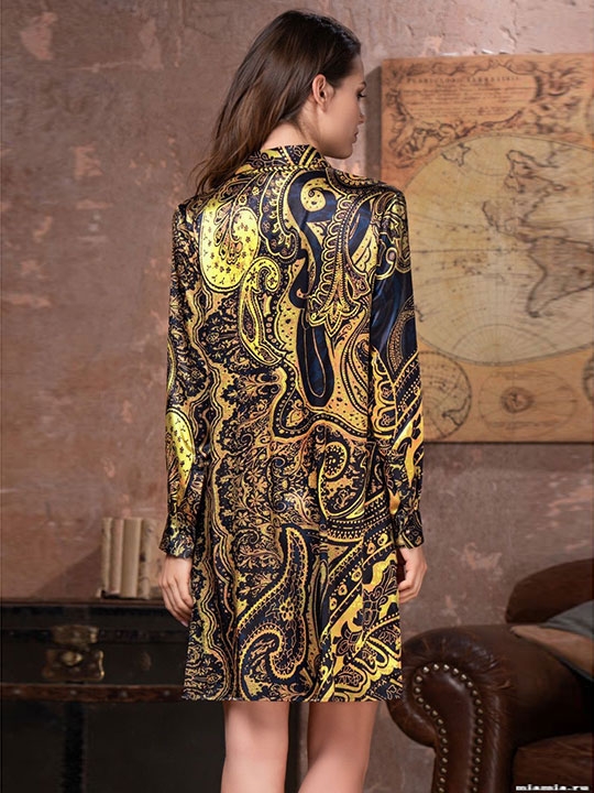 Темно-синий S, M, XL, XXL, XXXL Длинная рубашка на пуговицах Mia-Amore выполнена из смесового шелкового полотна с роскошным восточным узором. Рубашка длиной чуть выше колен, с разрезами по бокам и карманами в боковых швах. Рукава длинные, с манжетами. Длина рукавов регулируется хлястико 70% натуральный шелк, 25% полиэстер, 5% эластан