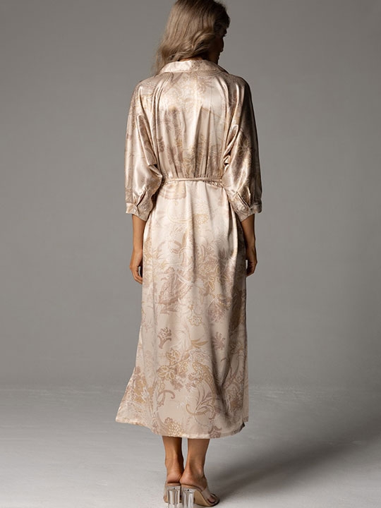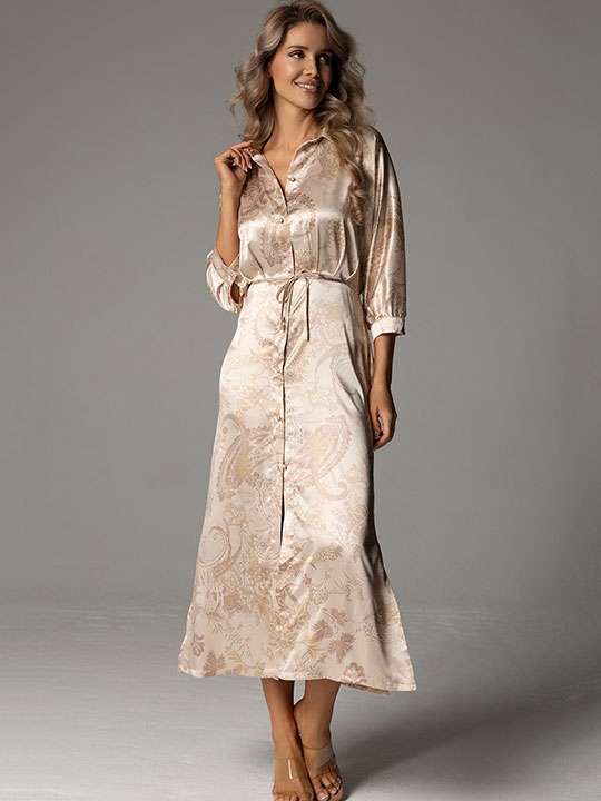 Черника S, M, L, XL, XXL Длинная рубашка Mia-Amore с центральной застежкой на пуговицы и рубашечным воротником, с рукавами «летучая мышь» длиной 3/4 выполнена из принтованного смесового шёлка с изображением пейсли. По талии рубашки есть приталивающий подрез со сборкой на груди и спинке. В боковых швах есть карманы. В боковых швах - завязки, которые регулируют прилегание платья по талии. 70% натуральный шёлк, 25% полиэстер, 5% эластан
