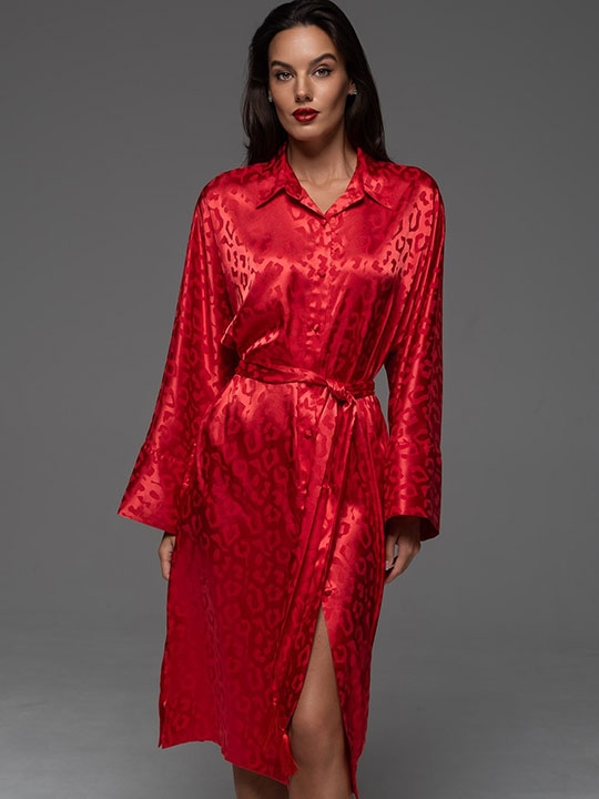 Красный XXL Длинная рубашка Mia-Amore свободного силуэта с длинным рукавом Изделие выполнено из искусственного шелка на жаккардовой основе. По бокам расположены карманы. В комплекте широкий пояс с кисточками. 100% полиэстер