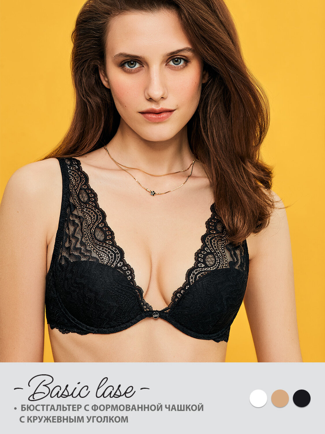 Кружевной бюстгальтер с формованными чашками на косточках, уплотненными в нижней части. С изящной кружевной полосой, которая плавно переходит с чашки на бретель. Позволяет создать оптимальный объем, приподнять грудь и подчеркнуть формы. Удобный стан и регулируемые бретели обеспечивают превосходное облегание и надежную поддержку. Застежка на два крючка создает дополнительный комфорт.