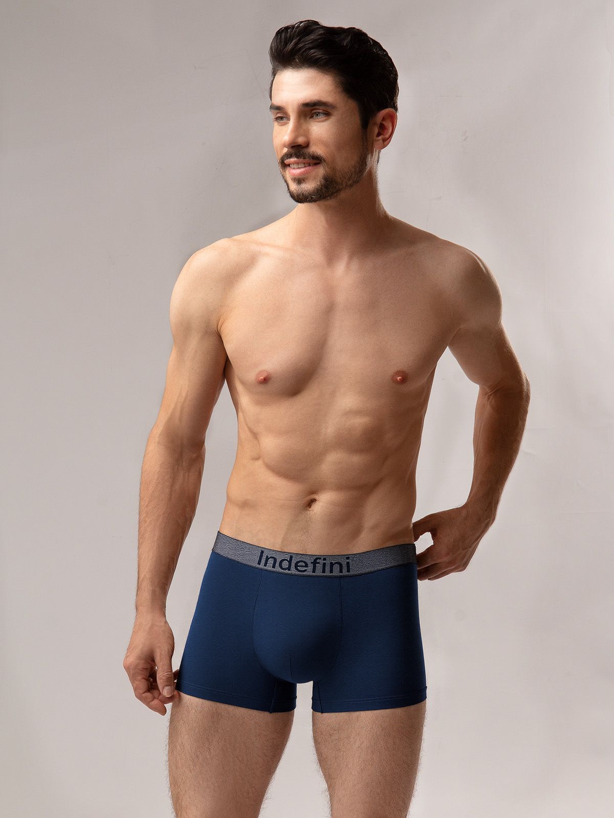 Удобная модель с эластичной резинкой, украшенной фирменной надписью "Indefini".