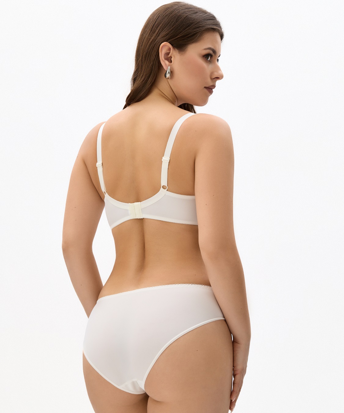 Бюстгальтер из вышивки на неэластичной сетке на тонкой прозрачной подкладке. Чашка мягкая на каркасах множественного членения придает груди округлую форму. Пояс усилен упругой пластиной.