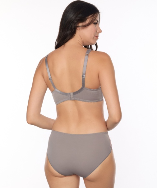Бюстгальтер с мягкой чашкой, на каркасах. Чашки из эластичного кружева с боковой корректирующей деталью, переходящей в бретель. Нижние детали чашек на подкладке из х/б трикотажного полотна. Боковые корректирующие детали из эластичного функционального полотна. Для обеспечения максимальной поддержки и комфорта боковые детали на подкладке из дубляжа на хлопке.