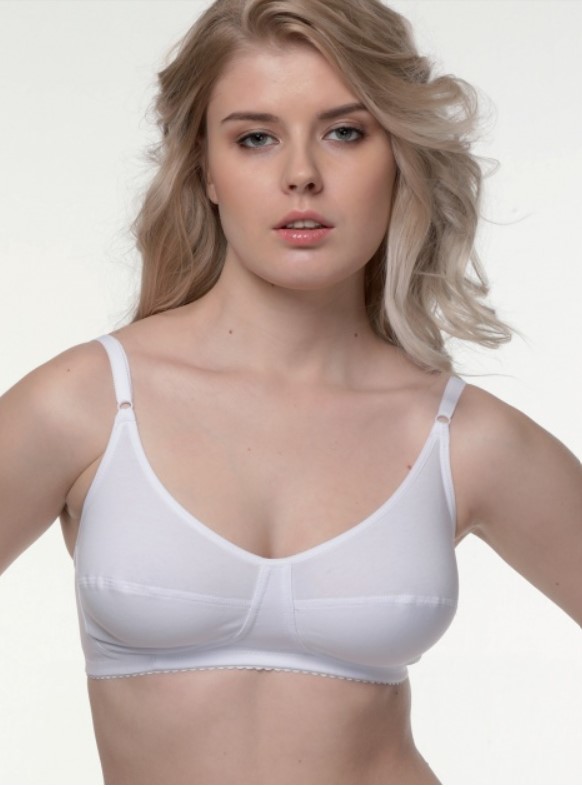 Бюстгальтер бескаркасный из х/б трикотажного полотна с лайкрой. Чашка мягкая, на подкладке из х/б трикотажного полотна.