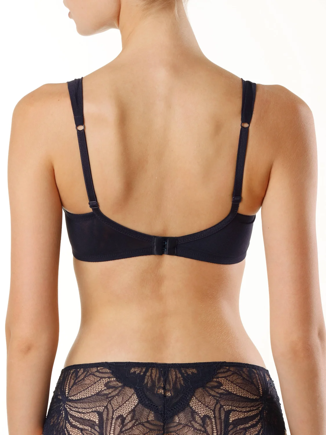 Мягкая чашка с вертикальными вытачками, придающими округлую форму груди. На каркасах. Чашки и боковые детали стана на сетчатой подкладке. Изысканные бретели задрапированы сеткой для поддержания легкого образа. Создаёт округлую форму и обеспечивает надежную поддержку груди. Чувственное, изящное и безупречно сидящее по фигуре белье.