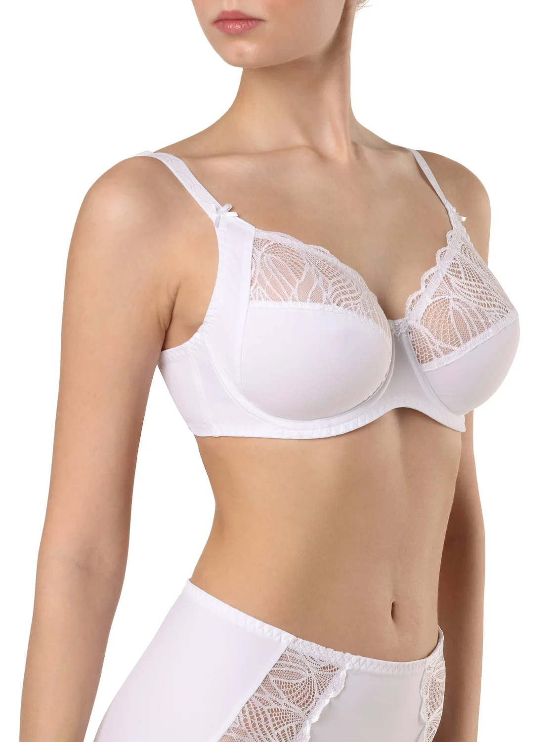 Классическая серия белья Aura создана из неэластичного функционального трикотажа и кружева с растительным рисунком. Белье эффектно подчеркивает женственные линии и гарантирует безупречную поддержку, необходимую для обладательниц пышных форм.