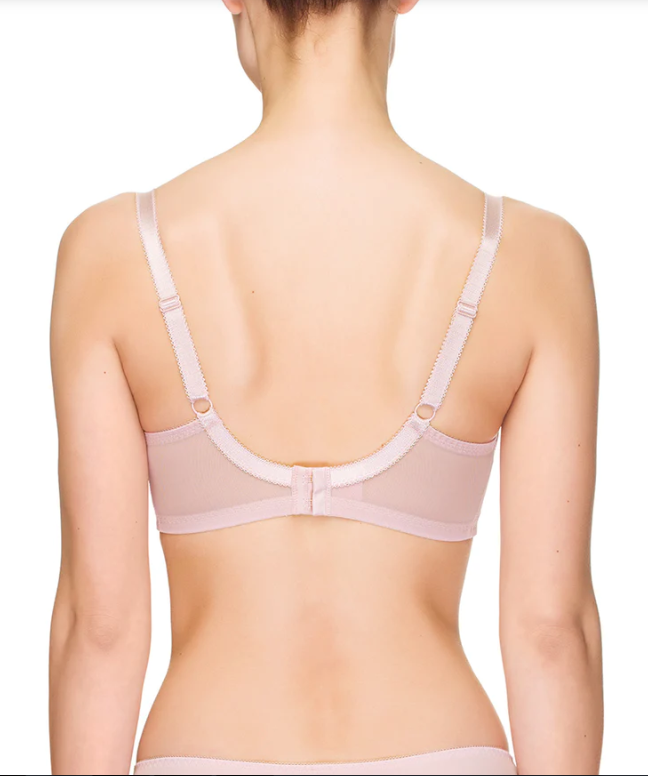 Классический бюстгальтер с мягкими чашками на каркасах. В основе чашки конструкция из трех деталей с диагональным членением. Чашки и центральная деталь из эластичного кружева. Нижние детали чашки и передняя часть стана продублированы хлопковой подкладкой. В боковой части чашки между кружевом и хлопковой подкладкой вработан усилитель из не эластичного капрона. Боковые детали стана из функционального эластичного сетчатого полотна. Бюстгальтер дополнен бантиком.