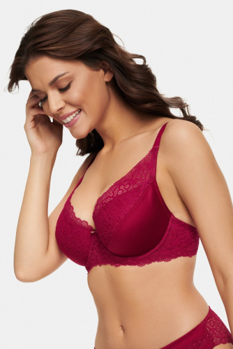 Бюстгальтер с гладкой чашкой пуш-ап. Спинка выполнена из кружева на дубляже из микротюли. Несъемные регулируемые бретели. Чашка декорирована резинками. Микрофибра: 83% полиамид, 17% эластан Кружево: 88% полиамид, 12% эластан Микротюль: 90% полиамид, 10% эластан Подклад чашки: 100% полиэстер